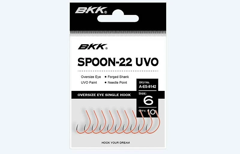 The BKK Spoon-22 UVO is a premium medium-wire replacement hook specifically engineered for anglers targeting large trout and salmon in both freshwater and saltwater environments. Built with BKK’s legendary craftsmanship, this hook optimizes your lure’s presentation and increases your strike rate through advanced visual stimulation and technical design.