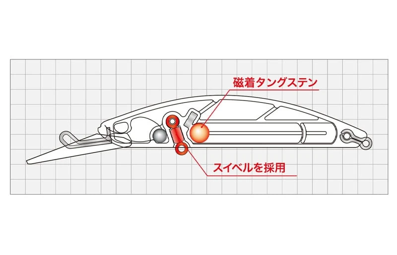 Der Deep Feet 87DRF wurde gezielt für mittelgroße bis große Forellen in Hauptströmen entwickelt. Durch ein einzigartiges Körperdesign, das überflüssiges Gewicht in allen Details eliminiert, wird Auftrieb sichergestellt. Er verfügt über ein Schwerpunktsystem mit magnetischem Tungsten, das eine hohe Anziehungskraft durch Flackern beibehält und gleichzeitig den Widerstand verringert, um die Wurfweite zu optimieren. Die Öse am Bauch ist im Swivel-Design gehalten, um Beschädigungen der Öse durch das Rollen großer Forellen zu verhindern und das Abreißen zu reduzieren. Auch im Strom taucht er schnell bis zur gewünschten Tiefe ein, ohne das Gleichgewicht zu verlieren, und bietet eine hervorragende Fähigkeit zur Tiefenhaltung.