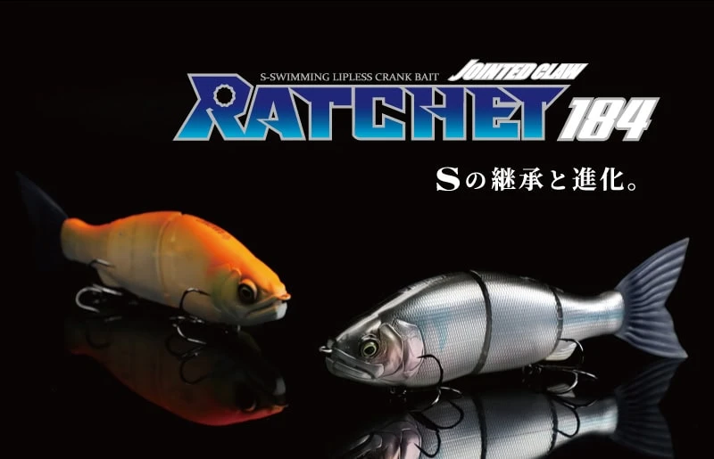 Der „Gan Craft Jointed Claw Ratchet 184“ ist ein stark schwingender S-förmiger Big Bait, der mit dem von ‚Shift 183‘ übernommenen [ROM-Dämpfer] und dem neu entwickelten großen Schwanz [ROM-Tail] ausgestattet ist.