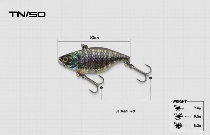 Durch die Ausnutzung der sinkenden Eigenschaften des TN-Vibration kannst du leicht Lift & Fall-Operationen durchführen, die träge Barsche bei niedrigen Wassertemperaturen ansprechen. Der beißfertige TN / 50 ist ein Trumpf, der unabhängig von der Größe der Barsche zum Beißen anregt. Es ist Zeit, in einem kleinen Gewässer wie einem Teich oder in einer Situation mit hohem Druck noch ein weiteren Fisch herauszuholen.