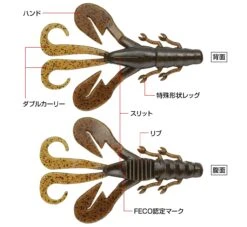 Die „Bukkomi Craw“ ist eine Krebsimitation, die aus verschiedenen Materialien hergestellt wurde, um drei unverzichtbare Elemente zu vereinen: Wurfweite, kompakter Körper und fesselnde Vibrationen. Der leicht abgeflachte Körper verwendet ein eher weiches Material mit einem hohen Salzgehalt, um die Dichte und den Erfolg beim Anhieb zu erhöhen. Diese Form macht es möglich, dass der Köder auf dem Wasser aufliegt und das die Absinkphase in der Wasserschicht reduziert wird. Die „Raid Japan – Bukkomi Craw“ verfügt auch über sehr bewegliche kleine Beine, die ihr dabei helfen, perfekt und stabil zu bleiben. Ihr Kopf verwendet ein steiferes Material ohne Salz, um eine unvorhersehbare Aktion während des Abstiegs zu erzeugen. Diese Festigkeit bietet einen perfekten Halt für den Haken und eine bessere Beständigkeit bei Kontakt mit Hindernissen. Mit einem Gewicht von etwa 14 g kann die B“ukkomi Craw“ leicht mit MH-Ruten verwendet werden und bleibt dabei perfekt handelbar und erreicht gleichzeitig außergewöhnliche Wurfweiten.