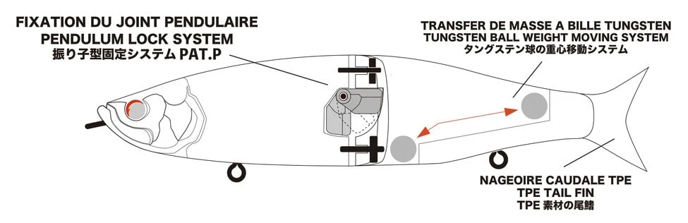 Das Besondere an dem Jointed Bait ist, dass er ein eingebautes System besitzt, welches beim Wurf das Trudeln und Taumeln des Köders verhindert, indem es das Gelenk blockiert. Beim Einholen wird das Gelenk jedoch direkt wieder freigegeben.